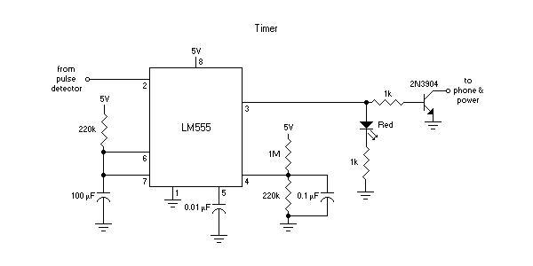 When a signal comes out of the pulse detector, it means call waiting is recognized, and though this signal may be brief, disconnecting a modem may take some time. Fortunately, the phone system is very quick to recognize when the circuit is opened by relay, and the telephone rings within a few seconds. The modems in computers seem a lot more patient, so a timer is needed to lengthen the disconnection signal’s duration to about ½ minute.